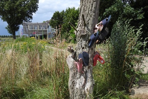 Sinds een paar jaar is er in de Koppeltuinen een spannend blotevoetenpad met waterspeelplek te vinden. Schoenen uit en gaan! Pomp zelf het water op met een van beide pompen, maak modder en volg het pad (ca. 60 m lang). Voel water, zand, gras, steen en hout onder je voeten. Klim en klauter tot aan de vijver en neem plaats op de troon. Ook kinderen in een rolstoel kunnen water pompen en een spannende brug oversteken!