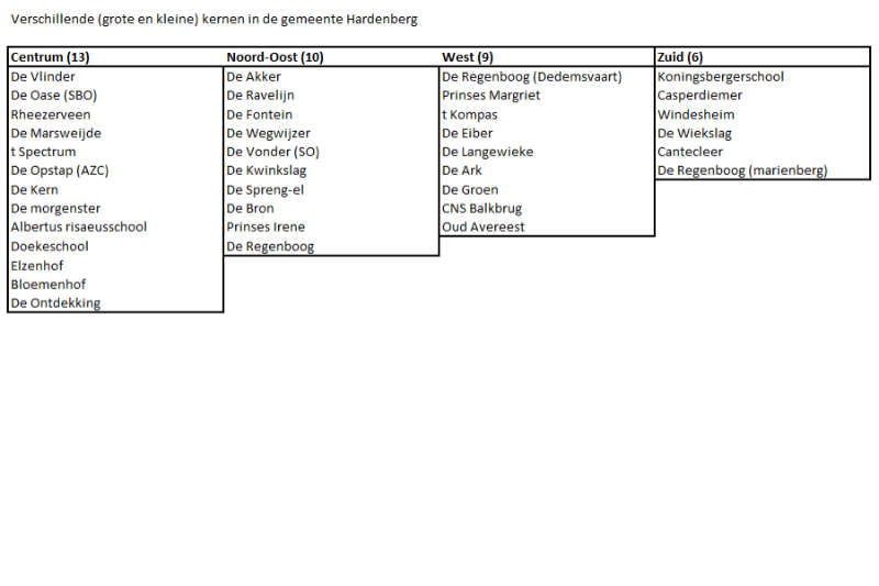 Indeling scholen: